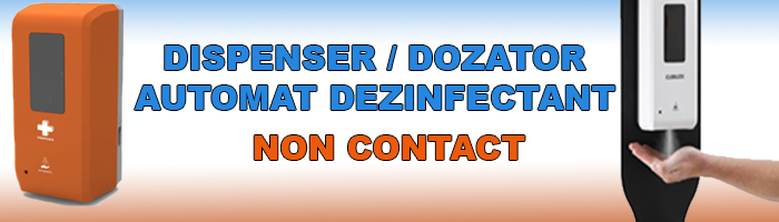 - Prevazut atit cu dozator pentru dezinfecant tip gel/sapun cat si cu dozator pentru dezinfectant lichid