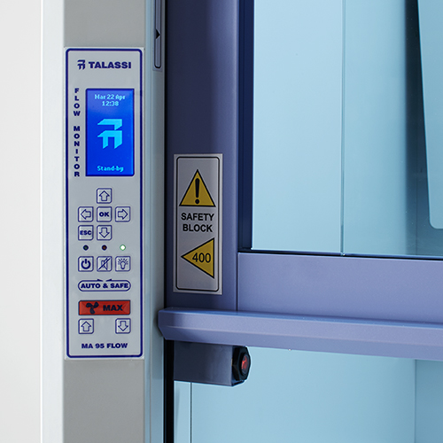 Sistemul alcatuit din nisa+sistem de extractie este calibrat la o deschidere frontala de 40 cm, viteza aerului de 0,5m/sec, in conformitate cu normele in vigoare.